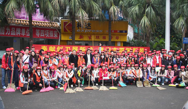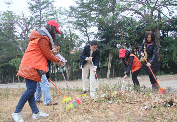 立足于我校申报“全国绿化先进单位”,广大学生应积极参与创建洁净我校的“心连心打造美丽湛师”活动,在部分清结场所,校团委老师与学生志愿者们一同进行了打扫,同心协力建设绿化校园。在活动中,我校学生志愿者的不畏寒冷的服务贡献精神获得了过往老师和同学们的肯定与赞许。接着,校团委老师一行来到“手牵手创建文明湛江”为活动主题的校外活动现场,校团委李发武副书记等老师分别察看了校外设点的我校校外街道打扫、寸金桥美洁、寸金公园义务维修等,并不时叮嘱志愿者们要注意安全,保护好自己。