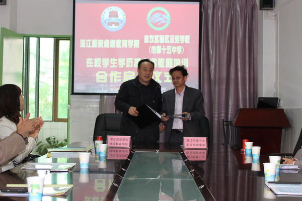 市十五中学谢健校长简单介绍了该校办学的基本情况以及未来发展的设想,并感谢湛江师院继续教育学院对该校学生学历提高和教师职后培训工作的大力支持。