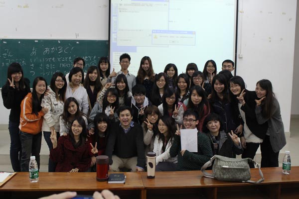 湛师新闻网12月22日讯 为纪念中日邦交正常化40周年,作为“日语全国巡回马拉松演讲”活动的一环,昨日,清华大学日语专家笈川幸司先生应邀来到外国语学院日语系,为日语系师生作了主题为“激情日语与美好人生”的演讲。日语系系主任陈俊英老师、李海爽老师、杨云老师、孙险峰老师、日语外教原田裕子老师以及全体学生到场聆听。