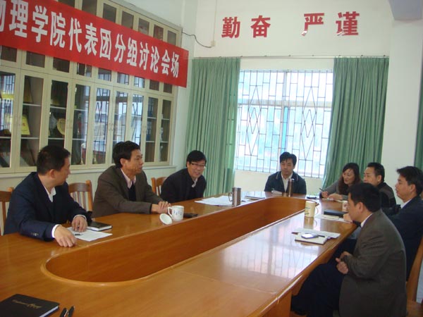 最后,学校邵乐喜副院长作讲话,他充分肯定了物理学院所取得的成绩,同时也对学院在发展思路、学科建设、师资队伍建设等方面提出了建议。希望学院领导班子要有“谋大事、谋发展”的思路,更多的从学院发展上进行探索,充分调动教职工的积极性,使物理学院班子更团结,学院更和谐,发展更加好。