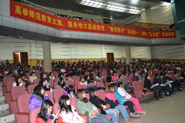 李江凌副院长在活动前的致辞中表达了对协办活动的湛江市教育行政领导部门和中小学的感谢,指出:师范生要掌握教育活的艺术,必须到基础教育一线去找到“源头活水”。学校和各二级学院依托“一衣带水”的湛江市基础教育优质资源不遗余力地为同学们搭建了学习与实践的“近水楼台”。在主动对接基础教育,合作培养师范人才方面,教育科学学院走在全校前列。从2005年起每年邀请中小学的名师、名校长走进校园参与师范人才的培养教育,切实提高了毕业生就业的竞争力。本次活动又是教科院精心安排,为全校师生提供的一次学习、研究基础教育的精品活动。勉励同学们珍惜机缘,把握资源,多到基础教育一线去实践,多向基础教育一线的前辈请教,以一流教师的水平和标准要求自己,努力成长成为新一代的优秀教师,成为太阳底下最光辉的行业中光彩夺目的一员。