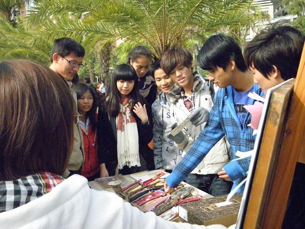 湛师新闻网12月11日讯 昨日,物理学院工业设计协会联合09工业设计全体学生和美术学院环艺设计的学生,在体育馆右侧空地上,举行首届创意市集活动。物理学院辅导员易贤老师、陈佳薇,工业设计专业老师林舒瑶、谭锦华、石旭东,还有美术学院服装设计刘欢老师,环艺设计怀康老师参与到了本次活动。
