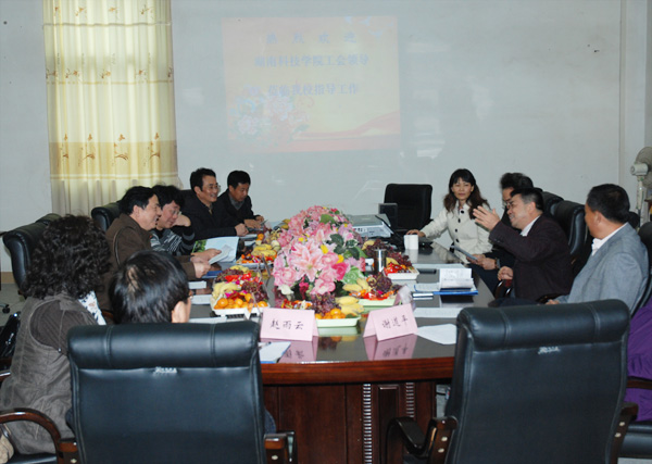随后,主宾双方就工会工作互相交流,互相探讨,互取经验。湖南科技学院工会负责人,对我校工会工作给予很高的评价,并要求提供有关工会工作的各种文件材料。