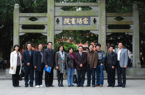 会后,来宾们参观了古榕广场与百年师范纪念塔,并乘车游览校园。下午乘坐“红嘴鸥”号游船,游览湛江海湾。