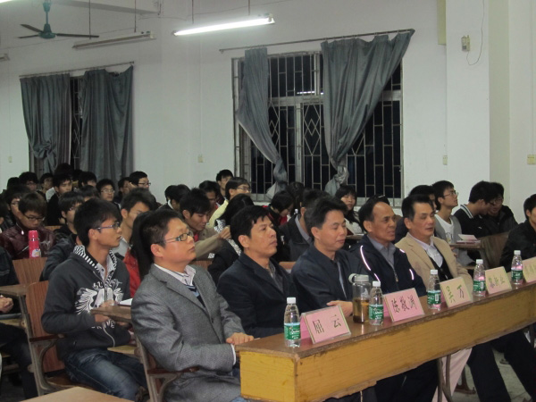 讲座中,陈敬渊老师就传统汽车与现代汽车维修技术的异同和现代汽车故障诊断的基本方法两大方面展开解说,陈老师配以简明的图画的说明也让在场的学生对汽车的专业知识有了更深入的认识。他深入浅出的讲话赢得了同学们阵阵的掌声。最后,他强调,求知求学唯有知其所以然,才能够真正掌握一门硬技术。