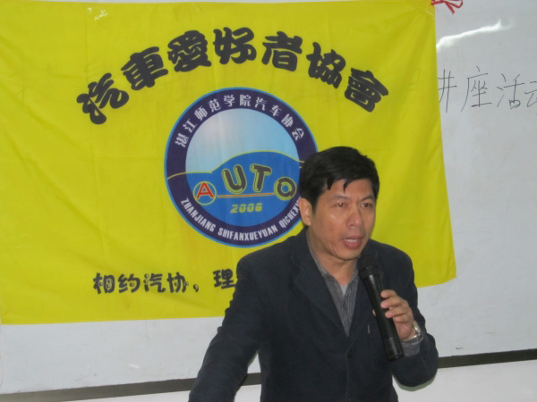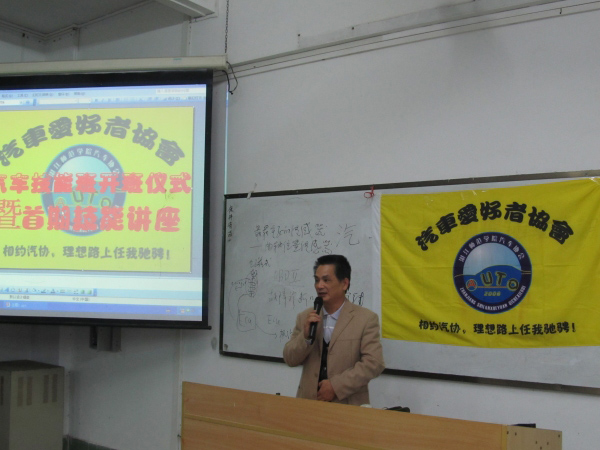 讲座伊始,由汽车爱好者协会会长陈小燕同学对汽车技能班做了简单的介绍,让参与此次讲座的老师以及学生对汽车技能班都有了一个大概的了解及认识。汽车技能班是在该院老师们的倡导、支持下开办的,并旨在通过第二课堂让所有的汽车爱好者在巩固专业知识之余,可以获得更多的实际技能操作。