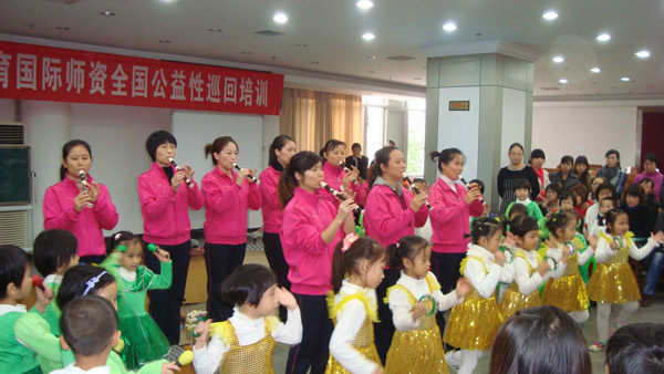 我校幼儿园作为全国奥尔夫音乐艺术教育优秀实验园和本次活动的承办方应邀在本次活动中展示奥尔夫音乐的教育教学成果。教师和孩子们的器乐合奏《快乐音符》,小朋友们精彩的器乐表演,老师们悠扬的笛声和娴熟的指法吸引了所有的与会同行,博得了与会专家、园长和老师们的阵阵掌声。