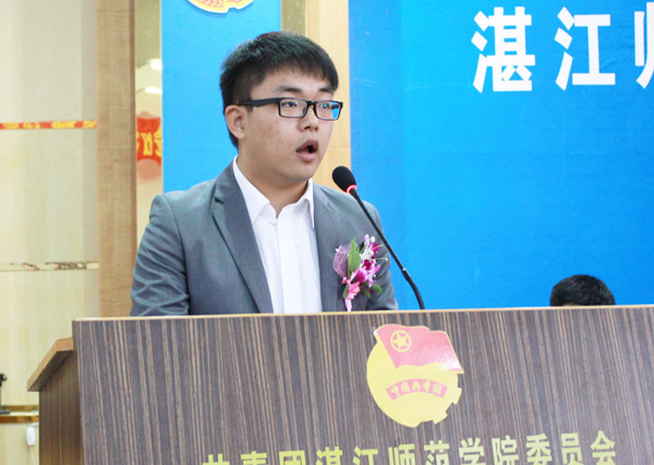 省学联执行主席胡伯阳同学在大会作了讲话。他认为,我校学生生会在校党委、省学联的正确领导下,取得了长足的进步,服务了学校的发展、服务了同学的成长成才,最后他结合自己学习工作的经历提出三点感想:一、勤于学习,善于把握“结合点”,努力争当青春“第一棒”;二、勇于实践,找准工作“切入点”,竭诚服务同学成长成才;三、敢于创新,把握组织“立足点”,发挥好桥梁和纽带的作用。团市委雷电副书记则呼吁我校学子高扬起青春的风帆,把握机遇、干事创业、开拓进取,团结带领全校青年学生勇立时代潮头,为我市做大做优经济“蛋糕”以及实施“五年崛起看湛江”发展战略作出新的更大的贡献!