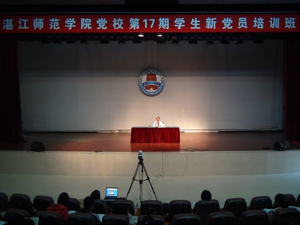 湛师新闻网12月5日讯 12月3日,我校党校第十七期学生新党员培训班在主会场音乐厅及分会场教三-511、教三-611阶梯课室举行。本期培训班由党委组织部邓妍妍部长主持,培训对象为入党后未参加过我校新党员培训班培训的学生党员及2011年入学的新生和插班生党员,共有1095人参加了此次培训。学校党委黄钢副书记、湛江市委组织部陈华江副部长、法政学院刘忠权博士分别作了辅导报告。