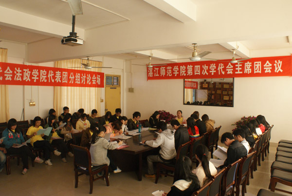 湛师新闻网12月3日讯 昨日,我校第四次学生代表大会法政学院代表团分组讨论会议于弘雷楼302会议室举行。本次会议主要议程包括推选法政学院代表团团长、副团长,酝酿主席团成员建议名单及传达会议精神三项。
