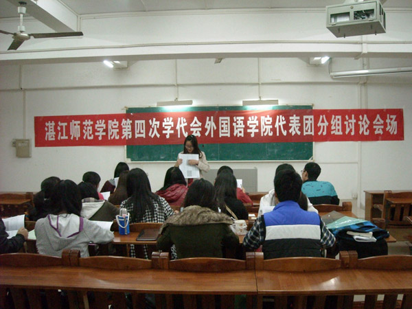 昨晚,我校学代会外国语学院代表团分组讨论会议—预备会在弘雷楼405室召开。该院代表团梁嘉欣,黎智荣等17位成员出席了本次会议,梁嘉欣同学主持了本次会议。