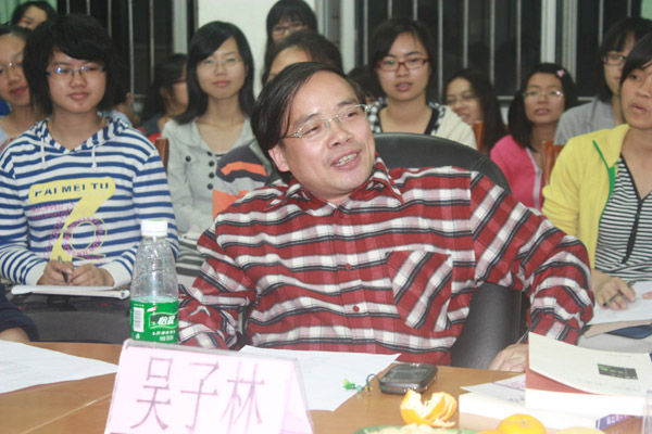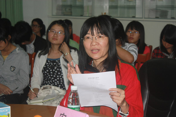 同学们十分珍惜这个与诗人面对面交流的机会,纷纷就诗人安琪的解析发表自己的观点。同学们的观点各有异同,有与安琪自己的创作意图相似的观点,亦有与其完全不相一致的观点,现场的思想交流碰撞出激烈的火花。诗人安琪认为不同的人对诗歌的解读就会有不同,对于同学们提出的与她想法不一样的但又能自圆其说的理解,她更是大加赞赏。同时,对于同学们所就自己不懂的问题提出的疑问,安琪都详细地作出了解答。著名文学评论家吴子林在发表自己对安琪诗歌的见解的同时也就同学们的理解提出了自己的想法,很好地帮助了同学们对诗歌的理解。在整个研讨过程中,安琪谈笑自如,甚至不时发出几声大笑,她的那种率真的真性情感染了在场的师生们,更是让整个研讨会的气氛轻松和谐。最后,安琪还鼓励同学们进行诗歌写作时多进行强化训练,她认为这是一个磨刀的过程,并强调“灵感不是等来,是磨来的”。