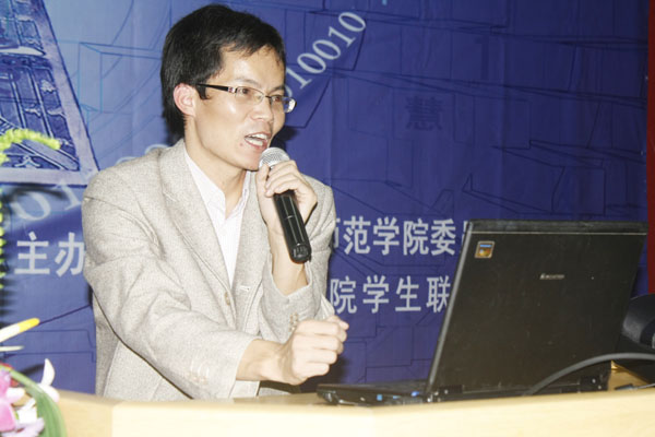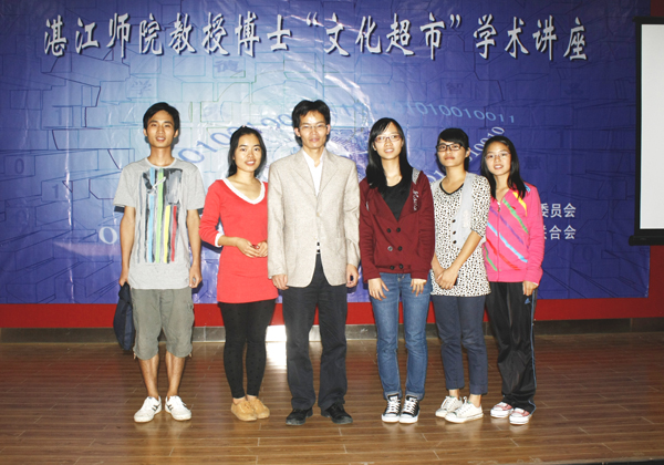 湛师新闻网11月29日讯 崇尚学术,亲近学子。11月25日,由人文学院刘新万博士主讲的第二十四场教授博士文化超市《遥望国学大师》在学术报告厅开讲,现场气氛十分活跃。