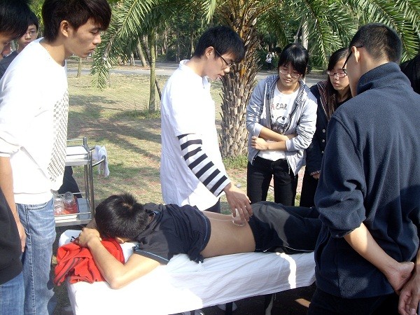 保健医疗现场演示的具体内容:1.急救现场演示;2.体育保健方法现场展示;3.体育康复方法的现场演示肩颈腰腿痛预防与治疗的现场演示;4.减肥、增肥塑身健康的现场演分。本次活动得到了同学们的积极响应,纷纷参与此活动表示支持。
