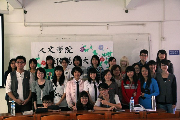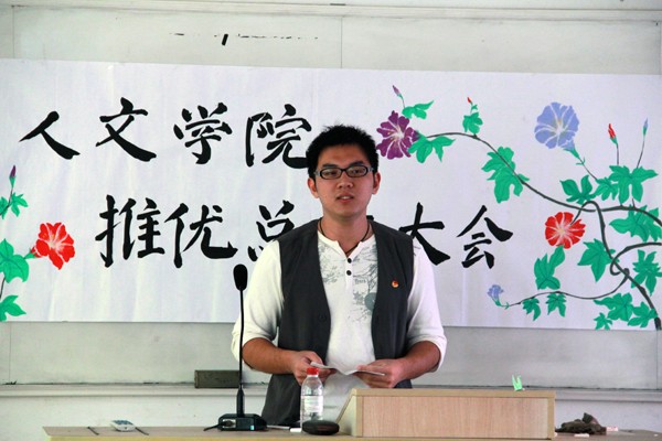 今天早上,人文学院在弘雷楼602室召开了2011-2012学年度第一学期推优总结大会。出席该会议的有该院团委副秘书长周允雄、两位党建干部;到场观看会议的有09、10级各支部团支书、解说员以及推优候选人。