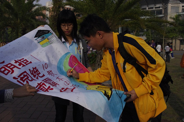 本次志愿者活动分3支队伍进行全方位的主题思想宣传。第一支队伍在图书馆内进行宣传。志愿者分布在图书馆的每一层楼,对霸占位置的现象给予委婉的告诫;第二批队伍利用海报的形式在雷阳广场附近向过路的同学宣传;第三批队伍则在咏雷楼、弘雷楼、燕雷楼下、篮球场附近、大运路进行宣传文明阅读的思想。本次活动得到了图书馆老师及同学们的积极响应,他们纷纷在海报上签名表示支持。