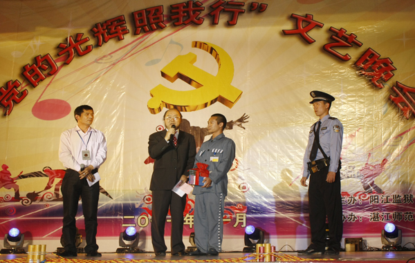 湛师新闻网11月25日讯 11月23日,应阳江监狱方面的邀请,我校组织音乐学院50多名师生到阳江监狱举办了一台“党的光辉照我行”大型帮教文艺晚会。校党委副书记、纪委书记黄钢,纪副书记、监察处处长冯汝智,音乐学院院长刘福瑞,音乐学院党委副书记黄增等出席了晚会。