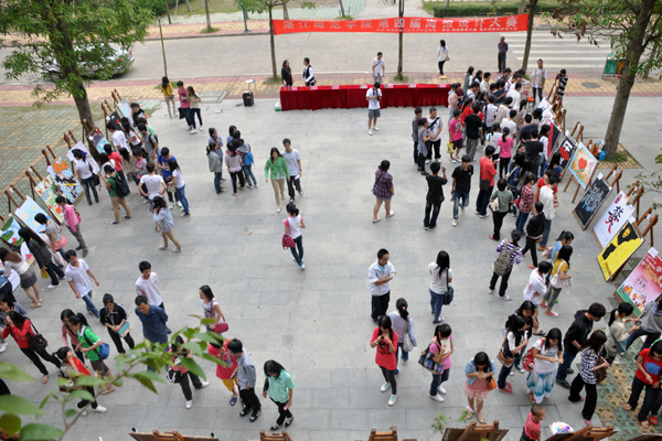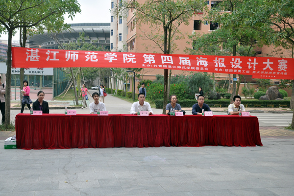 湛师新闻网11月24日讯 近日,由校团委主办,校团委宣传部、美术学院团委宣传部承办的我校第四届海报设计大赛在鸿园一楼隆重举行。校团委李粤书记,李亚九主任,梁剑老师,美术学院李芳老师一同观看大赛盛况,美术学院何远敬、钱锋老师受邀出席活动,并担任此次大赛评委。