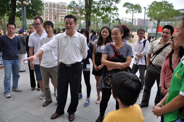 李粤书记等领导及老师们受邀参观作品。李书记在参观时对各位参赛选手的创意性思维以及精湛的手工制作表示肯定,欣赏作品《黑加白》时,李粤书记亲切地与同学们交流了看法,并鼓励作者要继续努力,保持活跃的创意性思维,努力创作出更加精美的作品。观看其间,看到自己喜欢的作品,李书记还用手机拍下,用以留念。整个赛场洋溢着浓浓的文化气氛,大赛最后,各参赛选手与领导老师一起合影留念。