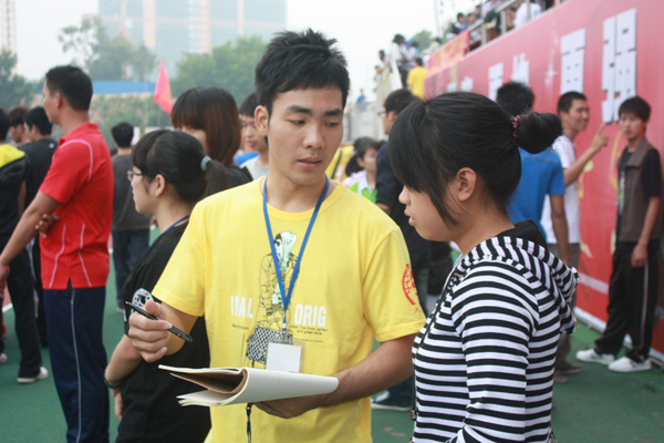 从第一场赛事的开始,运动场上随处可见“弘雷人”的矫健身姿。文字记者握着笔杆子,在本子上或快速地记录着比赛的情况,或一边和采访对象交谈一边记录着要点,把现场转换成文字,诉说那一个个精彩的故事;摄影记者为了抓拍更多的精彩瞬间,不断地穿梭于人群之中,公正的裁判、奔驰的运动员、辛勤的志愿者、呐喊着的拉拉队、尽职的保卫人员都被定格到相机里,每一个动作,每一个细节都收录到属于本次校运会的纪念册里。而网络部的干部们则把工作重点放到了“人文视点”的视频拍摄当中,为弘雷传媒中心的多方向发展努力着。