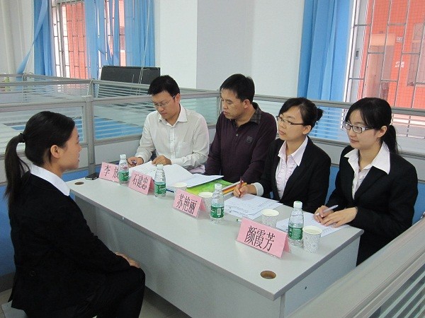 湛师新闻网11月20日讯 昨日上午,我校“新绿源杯”第七届校园模拟招聘大赛复赛的面试环节在弘雷楼111室正式举行,本次大赛由校招生与就业处、法政学院第三届模拟招聘大赛组委会主办,就业协会、人力资源协会承办。“新绿源”公司的人事助理陈洁芬、人力资源顾问高智勇、人力行政经理苏艳丽、销售经理顔霞芳以及光大证券团队经理肖挺、中国联通集团金融中心总经理李放、招生与就业处副主任科员张迪江老师、法政学院管理系石建忠老师担任本次面试环节的评委。