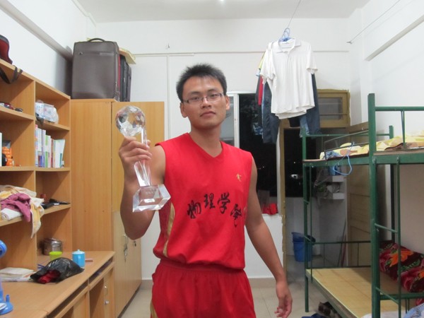 他来到大学不久,就加入了学院的篮球队,并成为主力。在今年刚落下帷幕不久的“三好杯”中一路冲锋陷战,最终获得了季军的佳绩。其中,在与信科院的小组赛中,虽然严重受伤(后来去医院缝了好几针),但还是基本上坚持着打完了全场。然而在提及“三好杯”时,他却表示遗憾,“其实我们一开始就以夺冠为目标的,只可惜……最可恨的是以几分之差输给了商学院……”,语气中满是遗憾,在轻叹了一口气之后,开始对未来憧憬了起来,“希望明年的‘三好杯’能拿个冠军,实现我的夺冠梦,也了却了咱物理学院的一个愿望”。