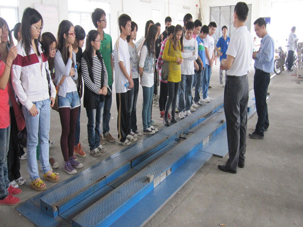 黄老师带领同学们观看了FCH-9010A型汽车侧滑检验台等先进汽车安全检测设备,同时,检测站技术工程师林锋为我们详细讲解了汽车转向轮横向侧滑量检验等12项机动车检测的内容和检测步骤,并解答了同学们所遇到汽车安全检测教材中各种学习盲点,使同学们进一步了解到汽车年检程序以及项目安全性能标准等方面的内容。