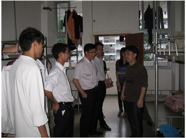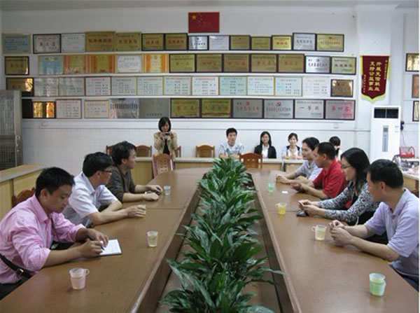 刘书记等在7日下午分别来到信宜一中、二中。首先刘书记等和实习学校的领导、主管实习工作的教导处主任、指导老师进行座谈。谈话中,刘书记感谢实习学校领导对物理学院实习工作的支持和指导,并详细了解实习生在学校的实习情况。同时,实习学校领导也肯定了我院学生的综合素质、虚心求学、刻苦耐劳的优秀品质,但也实事求是地指出了实习生中存在的问题,并表示会一如既往地欢迎和支持物理学院学生的实习工作。随后,刘书记一行和实习学生交流、参观学生备课室和宿舍内务情况,了解学生在实习过程中碰到的实际困难,并指出了实习过程要注意的问题。