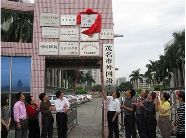 第二天上午,刘书记一行前往茂名市新世纪学校参加学校教育实习基地揭牌仪式。揭牌仪式前,和新世纪学校的领导及指导教师进行了座谈,详细了解了学生的实习情况。同时刘书记也对茂名市新世纪学校领导对物理学院实习工作的支持。