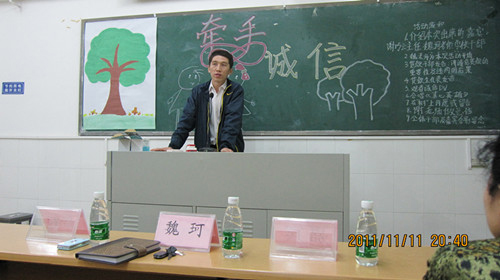 首先,由教科院辅导员魏老师针对诚信教育的重要性和必要性发言,他强调要大力开展诚信教育活动,加强大学生的诚信意识。