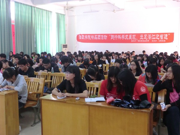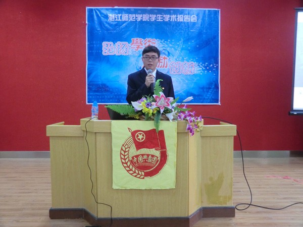 湛师新闻网11月12日讯 弘扬学术,激励创新。今天下午,10思政系精品团活动之学生学术报告会在鸿园四楼的学术报告厅精彩上演。主讲人为10思政4班的滕海峰。他以精品团活动的调研状况为内容进行了《从科学发展观看2014年湛江省运会》的学术报告。