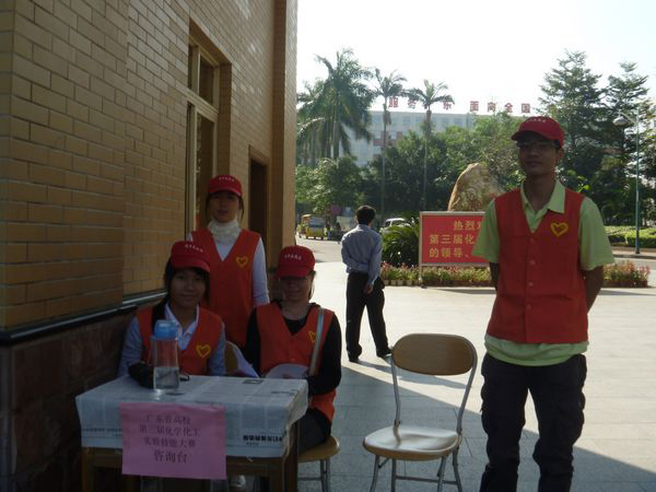 园府酒店接待处的会务组老师轮流接待参加大赛的相关人员。期间,化学院党委书记庄国雄、副书记钟明杰和辅导员万国权老师前来视察工作,并和会务组老师交流了接待工作的相关事宜。
