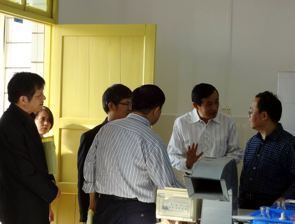 会后,专家们移步至三楼分析化学准备室检查了天平和药品的制作情况。