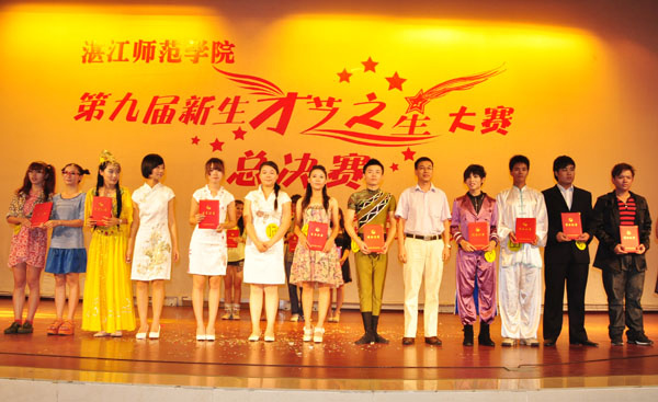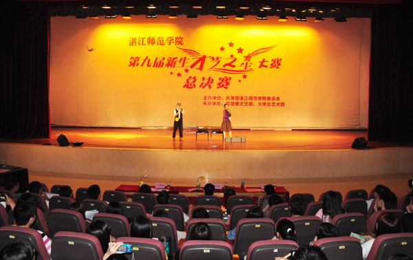 湛师新闻网11月7日讯 为积极响应学校人才培养模式改革,给2011级新生搭建展现自我,放飞艺术梦想、创意的舞台,本周周末,由校团委主办,校团委文艺部、大学生艺术团承办的第19届文化艺术节之第九届“新生才艺之星大赛”总结赛在音乐厅隆重举行。校团委领导老师出席了本次大赛,李利利副教授、徐钊毅老师和莫琼玉老师担任本次比赛的评委。