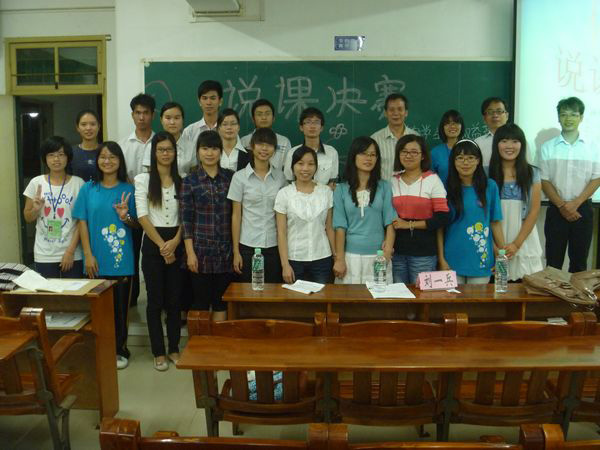 接着,刘一兵老师作点评。他说:“参赛选手基本上都掌握了说课要点,整个过程中表现地亲切、自然。虽然有的同学表现紧张,但也属正常现象。”另外,他还指出说,“说课大赛本质是一个教演活动,同学们的不足在于没有把目标、方法、教学过程很好的地连接起来。”由于部分说课内容与教材不符,他质疑选手们是否都认真看过教材,并针对这种现象提出良好的建议。