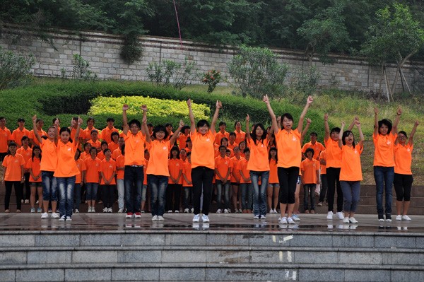 虽然活动开始时受到雨水的阻碍,但是同学们仍不减心中的热情。在活力四射的开场舞之后,疯英创始人李子深老师致辞。他的发言凝炼而有力,带领同学们喊出简单的一句话“复杂的事情简单做,简单的事情重复做,重复的事情坚持做”,现场的气氛活跃起来。