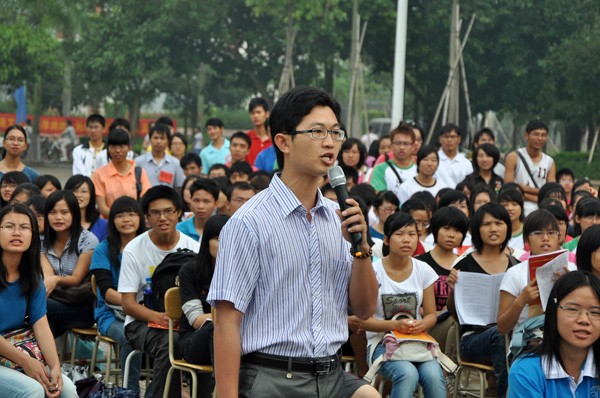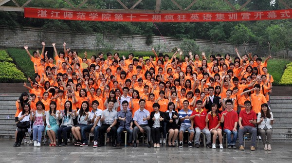 湛师新闻网11月6日讯 今天上午,我校疯狂英语第十二期集训营在雷阳广场举行开幕式。疯英创始人李子深老师、第八届主席黄松、第八届副主席杨雄伟、第十一期主席团、干部及教练、校学生会副主席李杨、来自海大CEA联盟的朋友、第十二期全体干部与教练、与2千多名学员一同参加了本次开幕式。