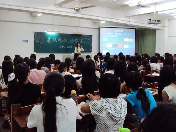 湛师新闻网11月6日讯 11月4日晚,由就业与招生处主办、就业协会承办的“2011年大学生就业实训月系列活动”讲座之一 “求职礼仪助你赢”于弘雷楼405教室举行。玫琳凯公司资深美容讲师、广东海洋大学寸金学院营销讲师梁玉梅老师以“个人形象礼仪的缔造”为主题作演讲。湛江广强有限公司销售经理余晓兵和湛江华丽金音影碟有限公司业务经理余晓东等出席了本次讲座。