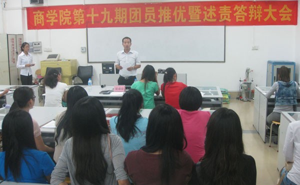 首先,主持人宣读商学院推荐优秀团员作为党对象的规章制度,让优秀团员明确此次推优的团员应具备“思想政治成熟,立场坚定;学习态度端正,成绩优良;工作积极主动,表现突出;生活健康文明,人际关系融洽”的素质和进一步了解推优入党的程序。