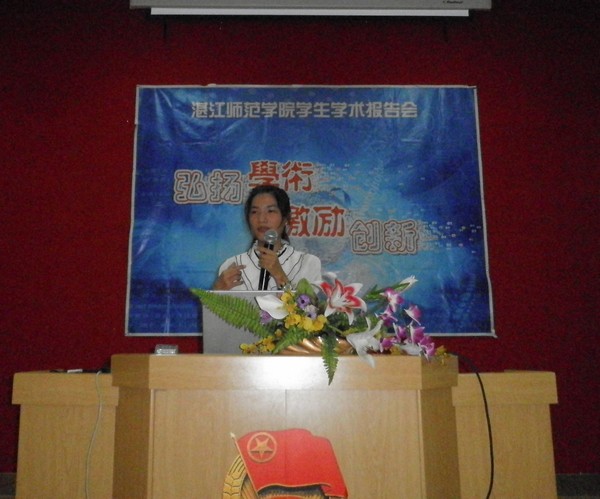湛师新闻网11月6日讯 昨天下午,化学院10级制药(1)班陈雅婷同学在鸿园四楼学术报告举行了主题为“关于潭各村的医疗条件以及村民用药意识调查”的学生学术报告会。
