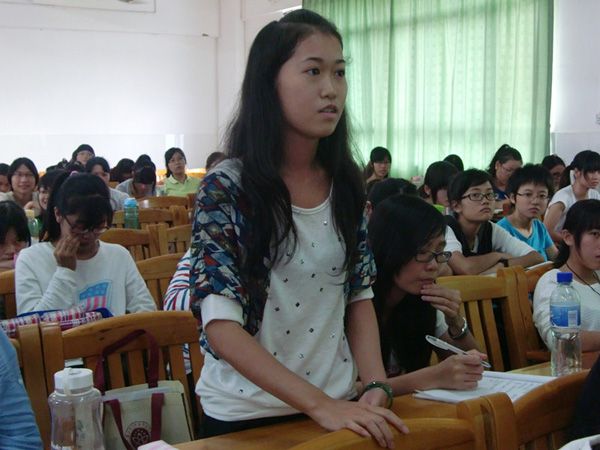 讲座过程中,黄教授讲解了他在美留学期间的心路历程。经历了台湾的教育方法和美式的教育方法后,他指出不仅海峡两岸间的教育制度存在差异,中西间的文化也有所不同。随着时代经济的发展,教育制度在逐步发生改变,社会由缺乏大学生转变成大学生泛滥,就业压力日益严重。大学生想在激烈的竞争中占有一席之地,必须不断充实自身。同时,黄教授指出,教育是良心的事业。作为一名师范生,应该热爱教师这份平凡而伟大的职业,要学会用爱心和耐心对学生进行因材施教。此外,他建议大学生应该树立正确的价值观,要有“努力、努力再努力”的奋斗精神。