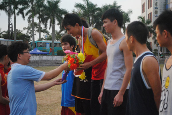 邹思扬副书记为男子一百米破纪录选手颁发金牌
