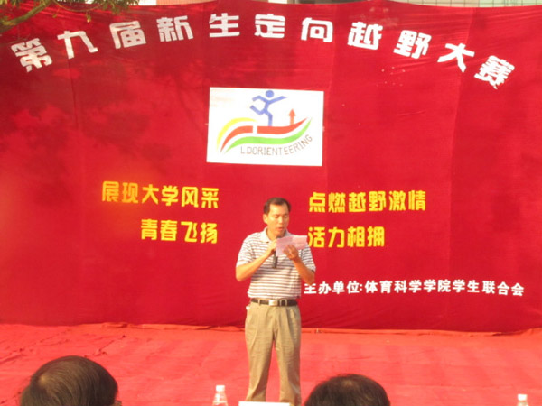 开幕式上,体科院曹巧书记致开幕词。他表示,这次新生定向越野大赛是集团体性、趣味性、竞争性于一体的活动,其活动目的是“展时代文明,炫学子风采”,他希望通过这次大赛可以更好地培养负责任、强能力、善创新的高素质人才。此外,曹书记介绍了本次活动的参赛者分别来自13个学院,一共有72支队伍,288名同学,队伍阵容庞大,相当具有吸引性。