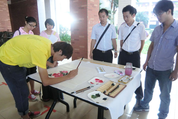 湛师新闻网11月5日讯 今天上午,商学院团委宣传部于燕雷楼举办第四届书法绘画大赛总决赛。该学院团委指导老师梁康建、辅导员张少华老师、团委秘书长刘林森到场观看了本次比赛。