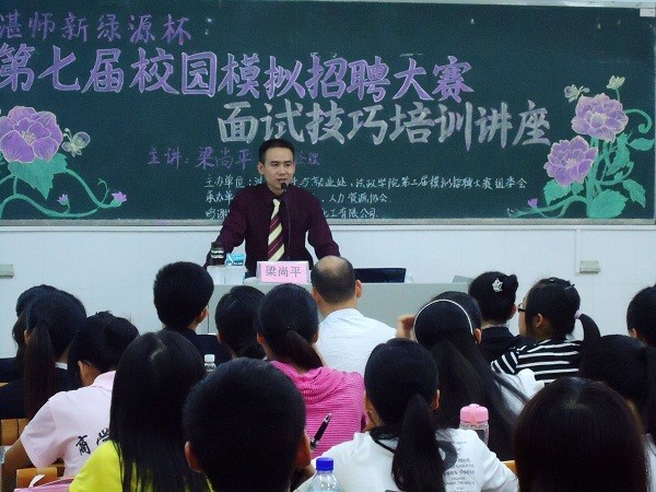 湛师新闻网10月30日讯 昨晚,“新绿源杯”第七届模拟招聘赛系列讲座之如何提高面试技巧专场于燕雷楼704室举行。本次讲座由广东新绿源化工有限公司梁尚平副经理主讲。