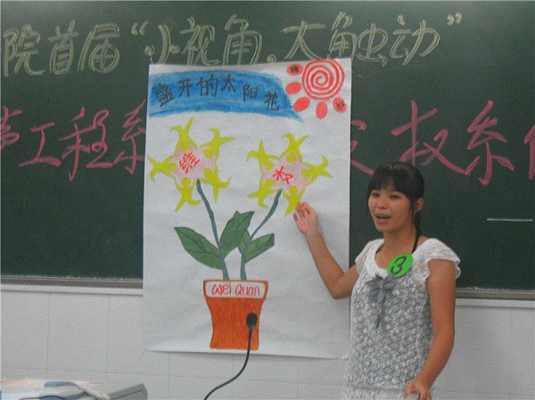 之后,高潮部分到了。主持人宣布由在场评委评出的结果。其中一二三等奖分别属于教科院10教本3班吴杏娟的《合同,你签了吗》,外国语学院10英教2班陈月娥的《盛开的太阳花》和外国语学院10英教2班岑燕媚的《拳中权》。而教科院教本二班715女生宿舍夺得了最佳人气奖。