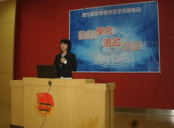 湛师新闻网10月30日讯 昨天上午,鸿园四楼学术报告厅迎来了两场由化学院学子主讲的学术报告。本次学术报告由该院团委学术科技部主办,团委秘书长林清青出席了本次报告会。