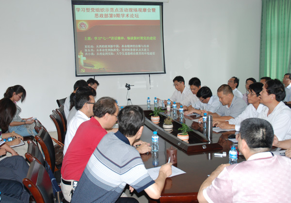 会议主要分为三个部分:一、介绍思政部学习型党组织示范点的建设情况;二、开展思政部第9期学术论坛活动;三、刘书记作讲话,与会人员在学术论坛上还进行讨论及交流。