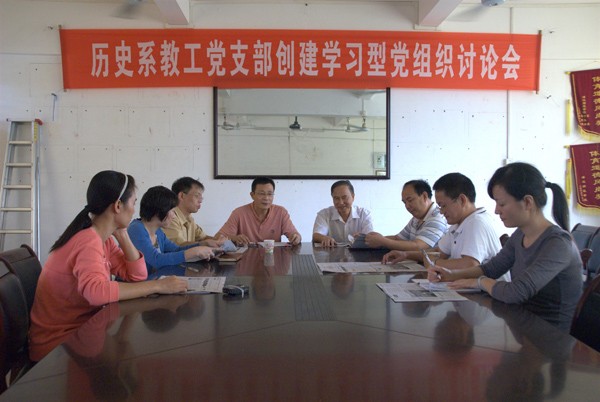 湛师新闻网10月20日讯 昨天,法政学院历史系教工党支部在弘雷楼三楼会议室举行了“创建学习型党组织”研讨会,该系党员教师参加了会议,会议由支部书记景东升博士主持。
