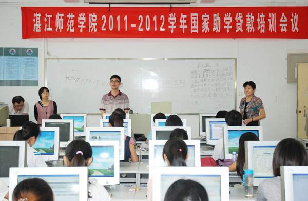 湛师新闻网10月18日讯 为了贯彻国家助学贷款精神,做好我校国家助学贷款工作, 10月14日下午,我校学生处学贷中心在综B-406开展了“湛江师范学院2011-2012学年国家助学贷款业务培训”活动。学生处黄达海处长、学贷中心谢巧云老师、黄群老师及各二级学院辅导员、学生干部等出席了这次培训会议,会议由谢巧云老师主持。